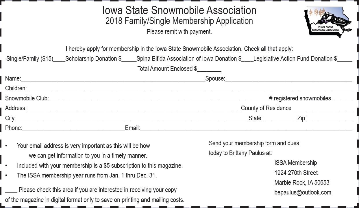 Copyright 2003-17. Iowa State Snowmobile Association. All Rights Reserved. Questions or comments? webmaster@iowasnowmobiler.com |