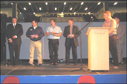 Kramer and Terry Durby receive international flags during closing